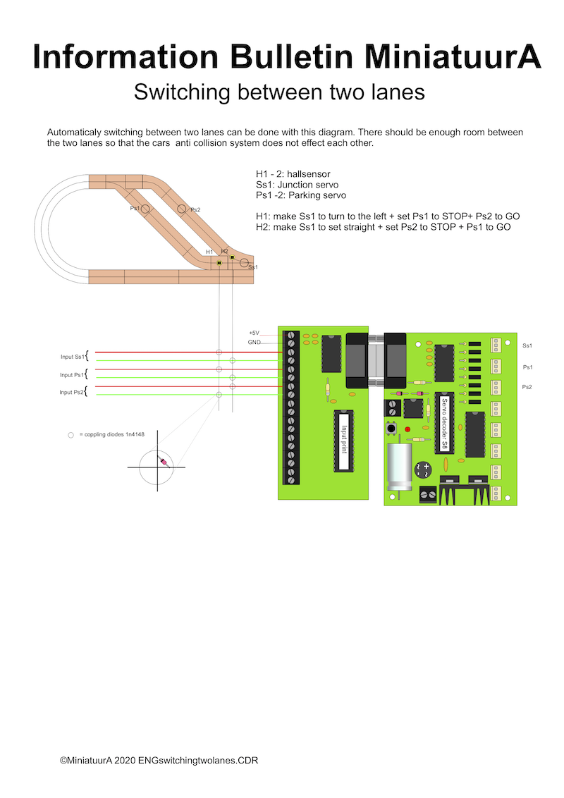 Vous trouverez ci-dessous le schéma de câblage pour cette automatisation proposé par Miniatuura (anglais et néerlandais) qui commercialise le système DC-Car.
